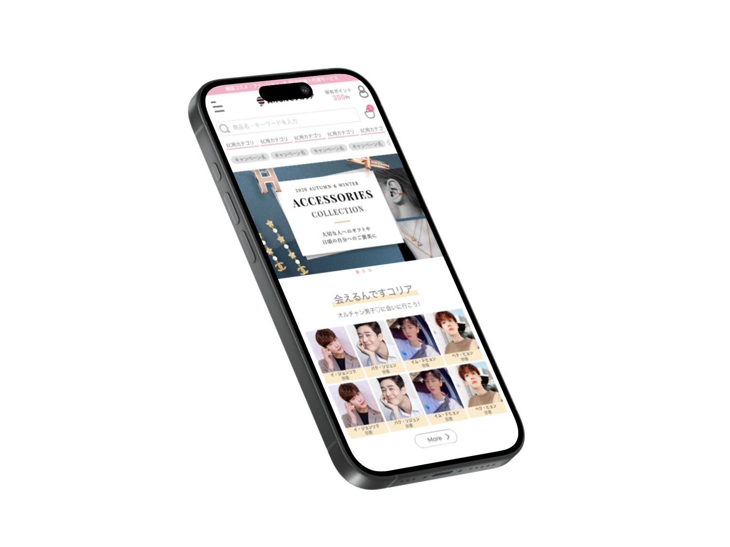 商品画像そのものを大きく見せるよりも、「たくさんの商品が並んでいる」印象を与える一覧性の高いレイアウトを採用し、回遊しやすさを重視しています。