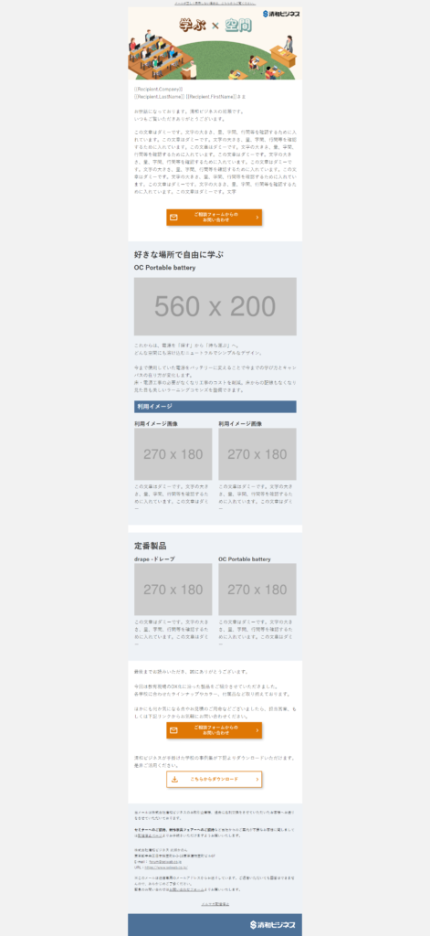 Account Engagementを活用したメールマガジン配信業務を、最低でも月2回のペースで運用できるようフローを整備し、配信テンプレートのデザイン・コーディングを担当しました。