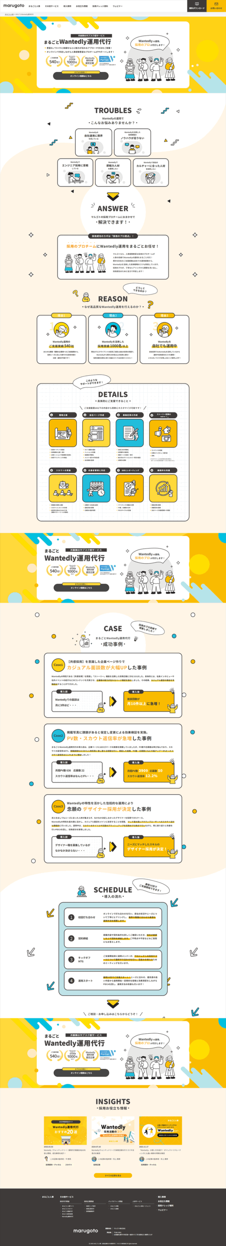 Wantedlyを活用した採用支援サービスの紹介LPのコーディングを担当しました。視覚的なインパクトと訴求力を高めるデザインをそのまま再現し、スマートフォンにも最適化したレスポンシブ対応の実装を行っています。